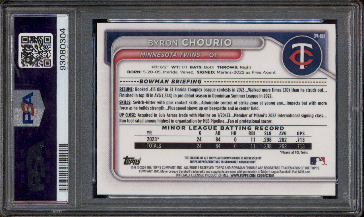 2024 Bowman Chrome Auto HTA Gold Lava #CPABCH Byron Chourio RC /50 PSA 10
