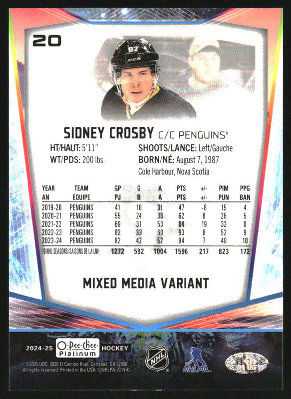 2024-25 O-Pee-Chee Platinum Mixed Media Variations #20 Sidney Crosby SP