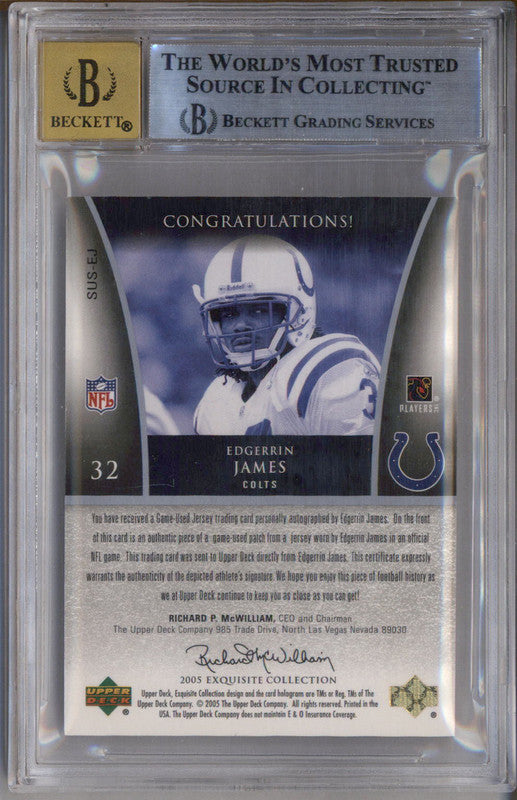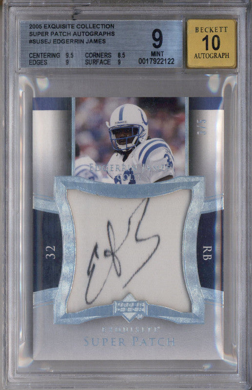 2005 Upper Deck Exquisite Collection Super Patch Auto Edgerrin James /5 BGS 9