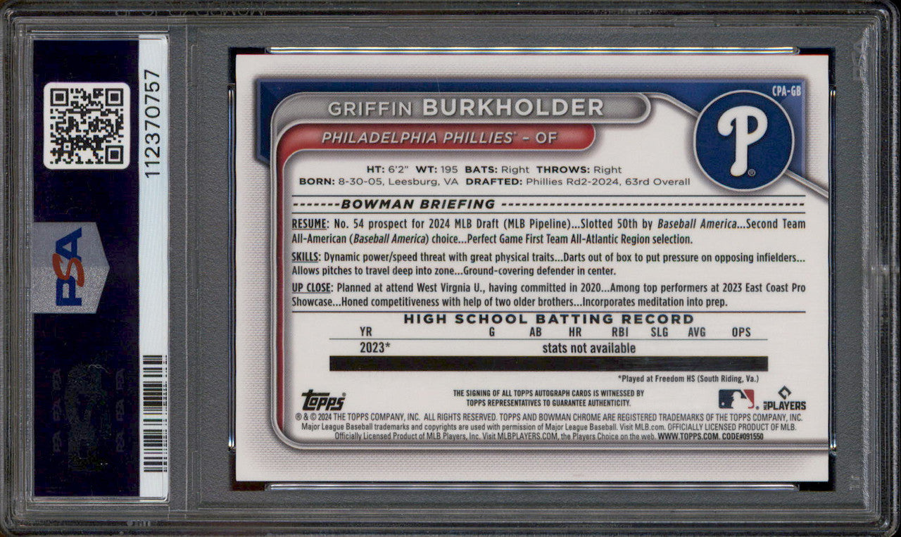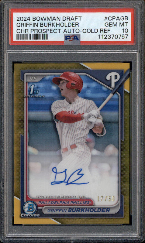 2024 Bowman Chrome Rookie Auto Gold Griffin Burkholder RC /50 PSA 10