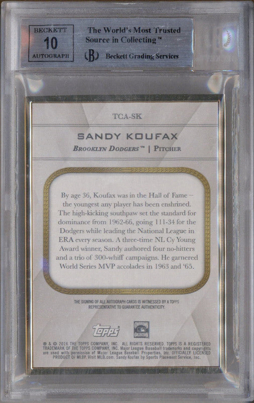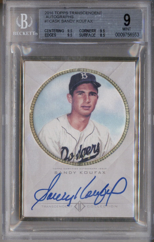 2016 Topps Transcendent Autograph #TCASK Sandy Koufax Auto /52 BGS 9