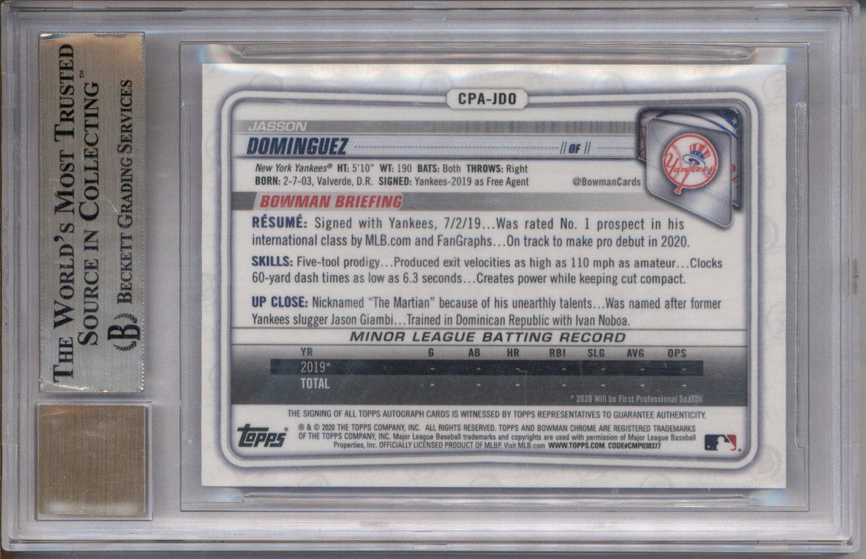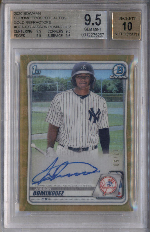 2020 Bowman Chrome Autographs Gold Refractor Jasson Dominguez Auto /50 BGS 9.5