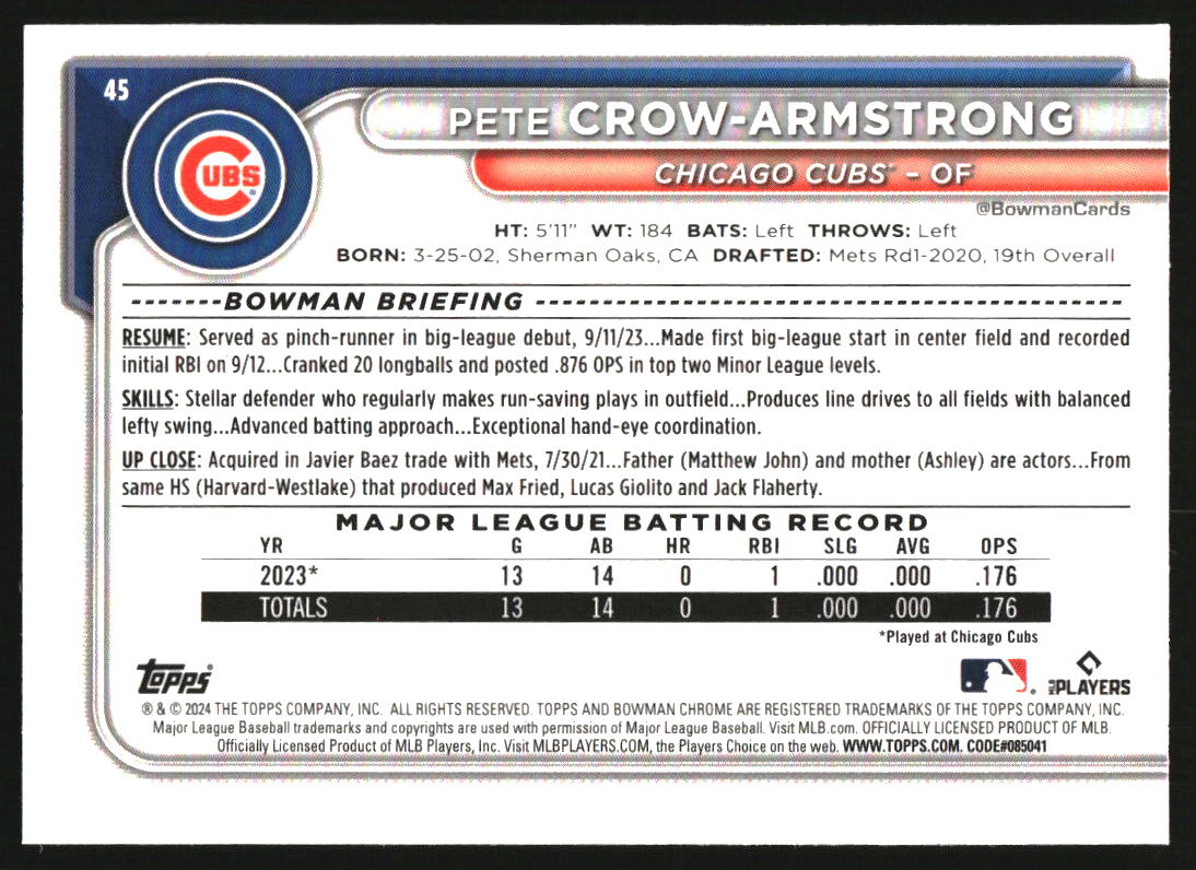2024 Bowman Chrome Sapphire Yellow #45 Pete Crow-Armstrong RC /75