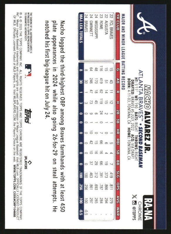 2025 Topps Chrome Sapphire Rookie Auto Orange Nacho Alvarez Jr. RC Auto /25