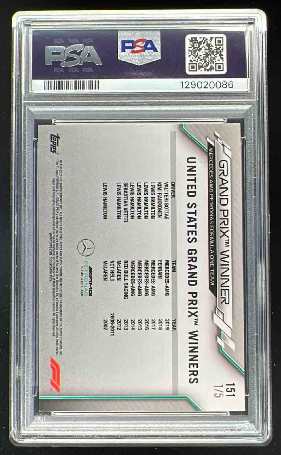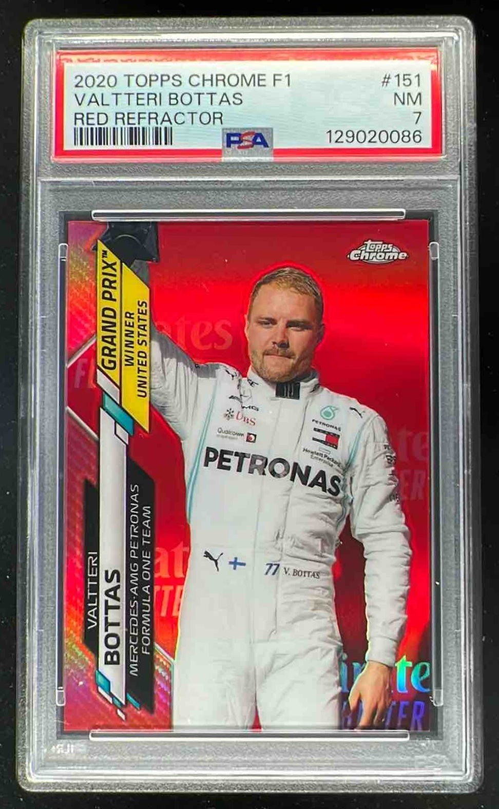 2020 Topps Chrome Formula 1 Red Refractor #151 Valtteri Bottas /5 PSA 7