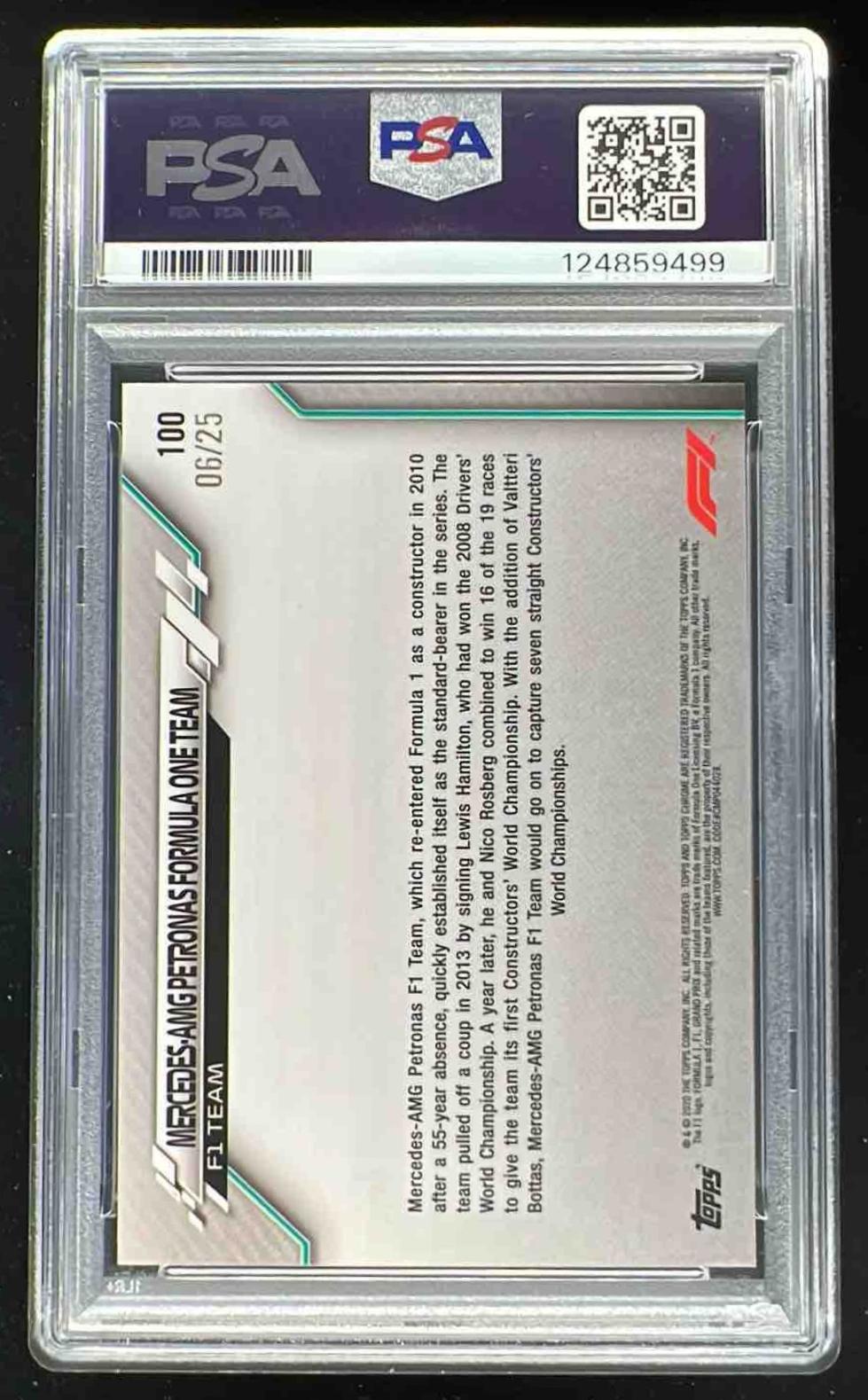 2020 Topps Chrome Formula 1 Orange Mercedes-AMG Petronas Formula /25 PSA 8