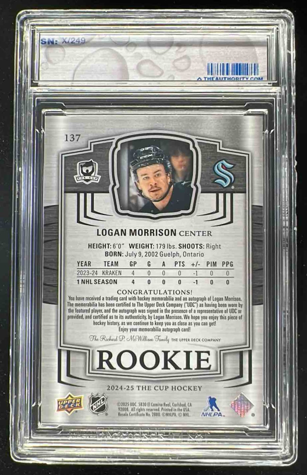 2024-25 Upper Deck The Cup #137 Logan Morrison Rookie Patch Auto /249
