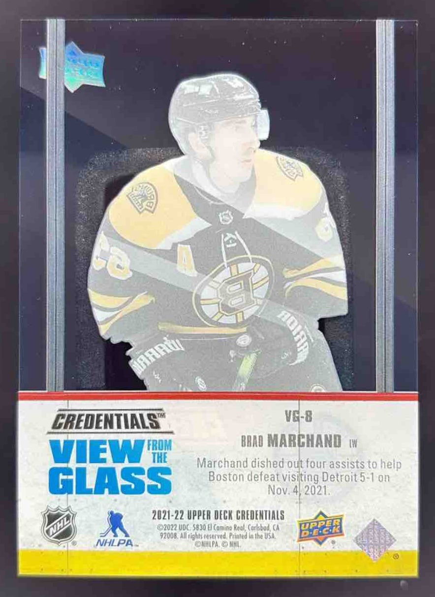 2021-22 Upper Deck Credentials View from the Glass #VG-8 Brad Marchand