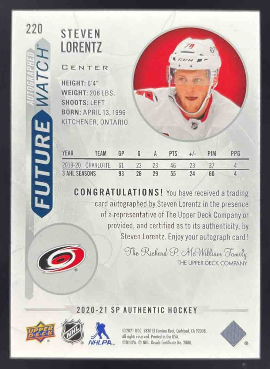 2020-21 SP Authentic #220 Steven Lorentz Autograph RC Future Watch Auto /999