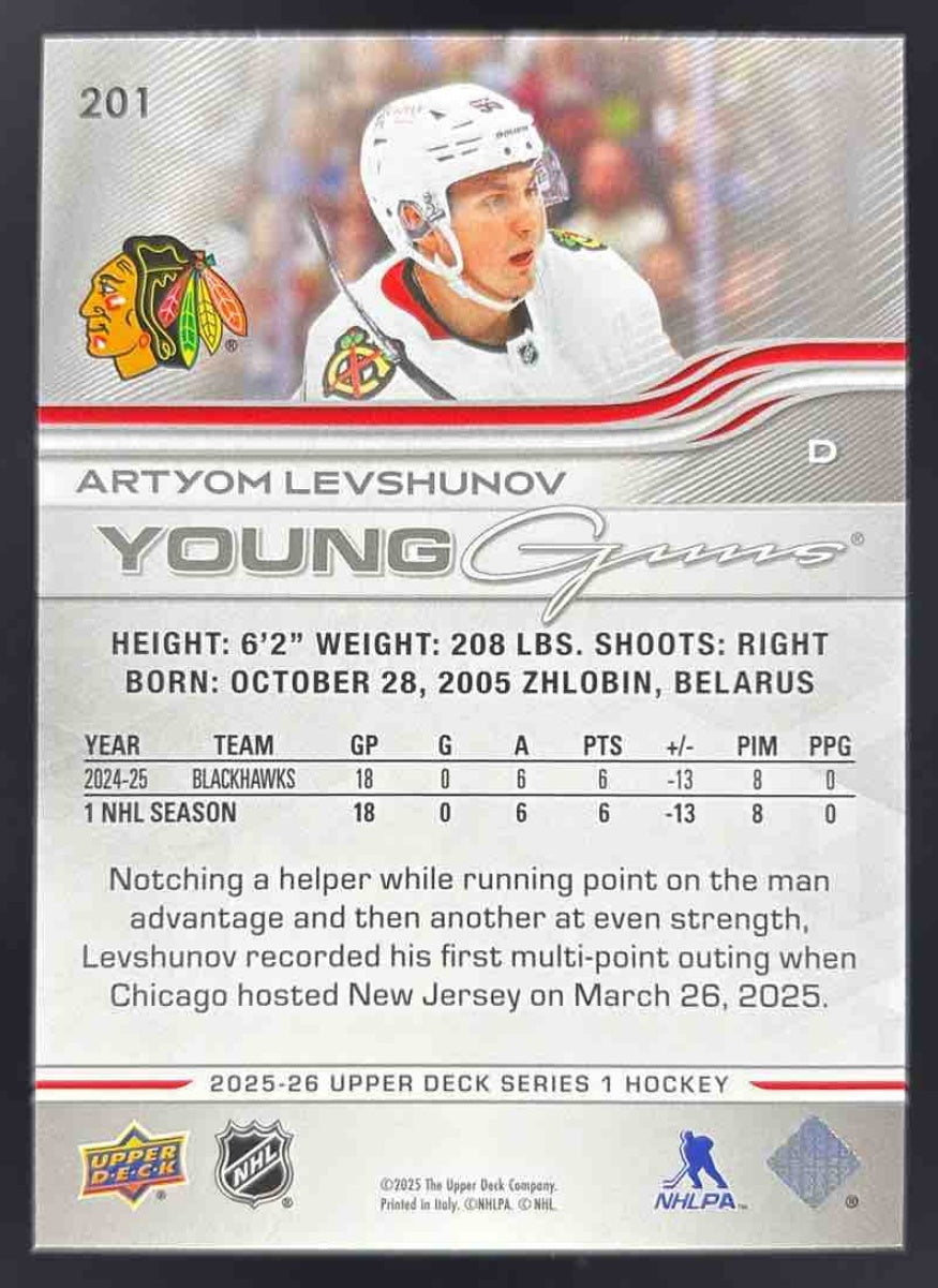 2025 Upper Deck Series 1 #201 Artyom Levshunov Young Guns RC