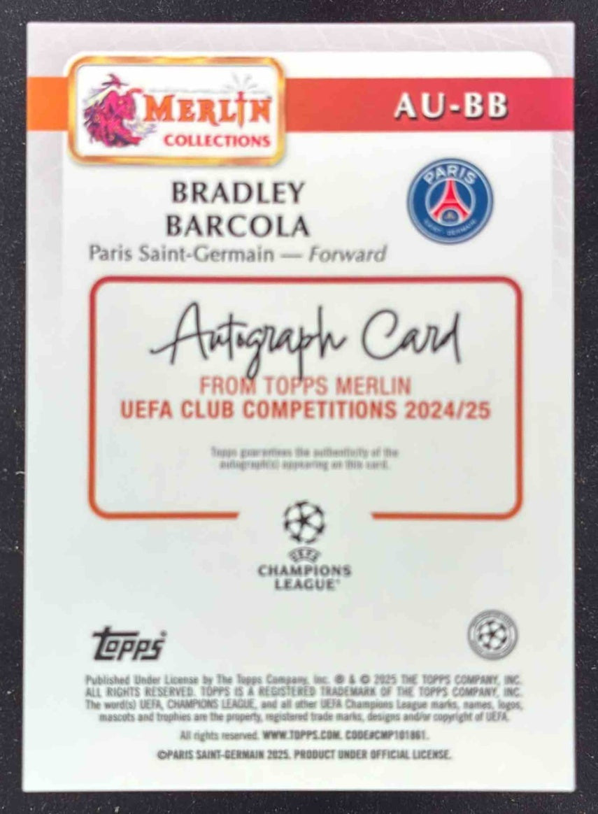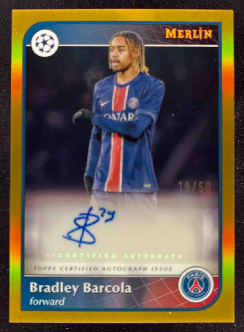 2024-25 Topps Merlin Chrome Gold Refractor #AU-BB Bradley Barcola Auto /50