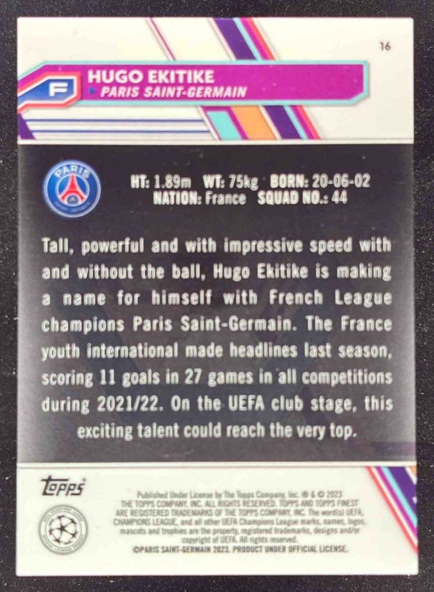 2022-23 Topps Finest Club Competitions Blue Refractor #16 Hugo Ekitike RC /150