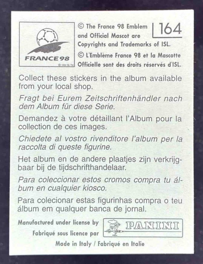 1998 Panini World Cup Stickers #164 Zinedine Zidane