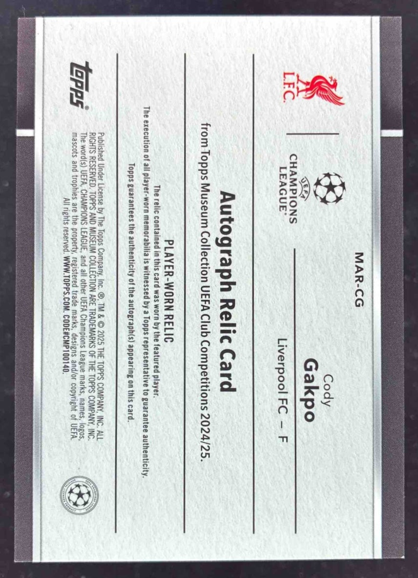 2024-25 Topps Museum Collection Relics Amethyst #MAR-CG Cody Gakpo Auto /99