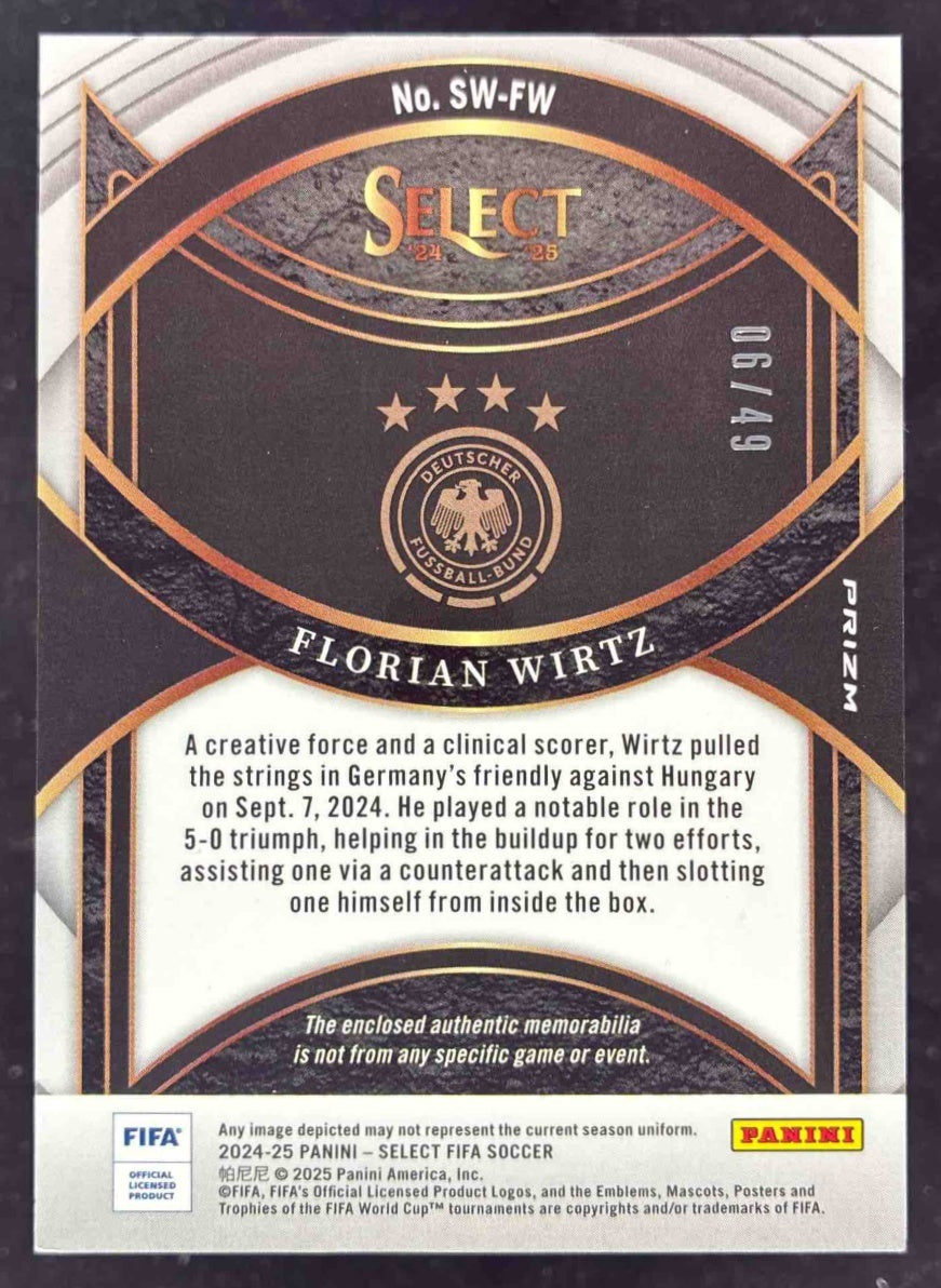 2024-25 Panini Select FIFA Select Swatches Purple #SW-FW Florian Wirtz /49