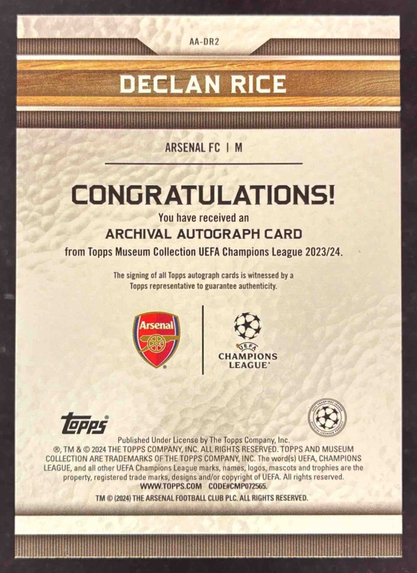 2023 Topps Museum Collection Archival Sapphire Declan Rice Auto /75