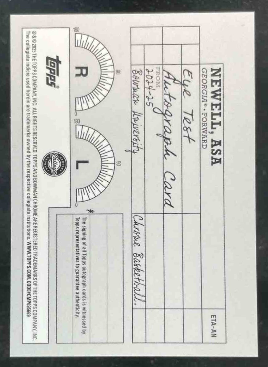 2024-25 Bowman University Chrome Eye Test Autographs #ETA-AN Asa Newell Auto