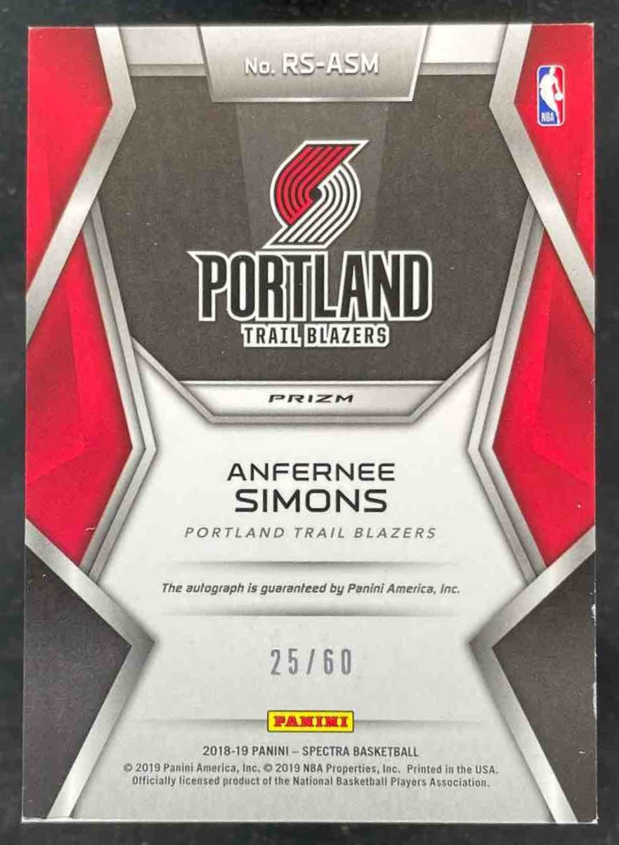 2018 Panini Spectra Rising Stars Neon Blue #RS-ASM Anfernee Simons RC Auto /60