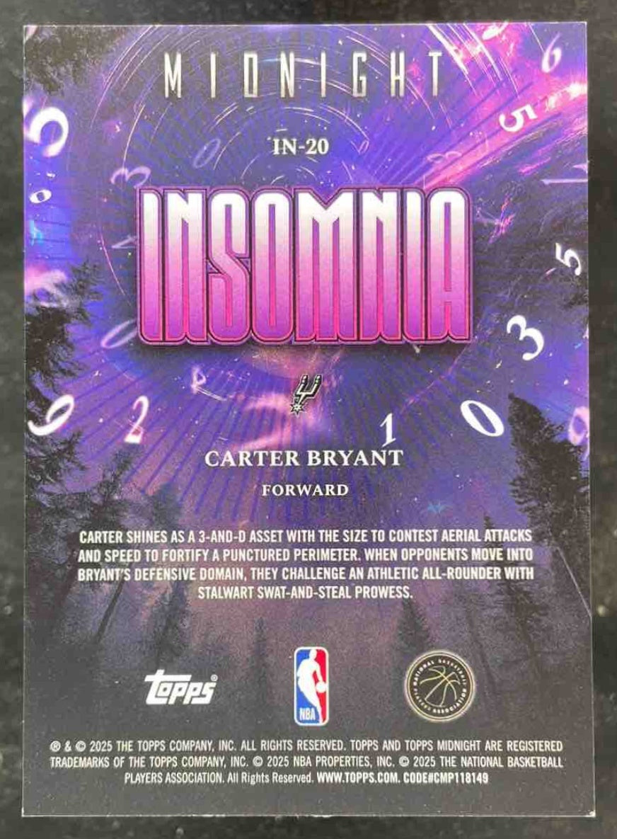 2025-26 Topps Midnight Insomnia Morning #IN-20 Carter Bryant /149