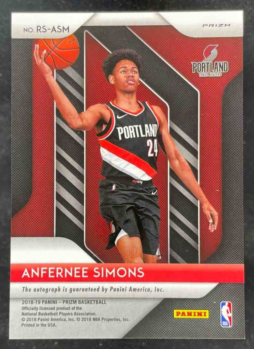 2018-19 Panini Prizm Rookie Prizms Silver #RS-ASM Anfernee Simons RC Auto