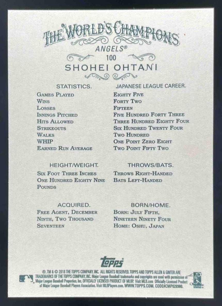 2018 Topps Allen & Ginter #100 Shohei Ohtani RC
