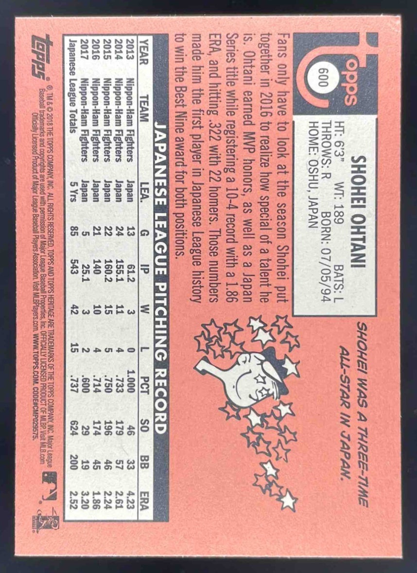 2018 Topps Heritage #600 Shohei Ohtani RC