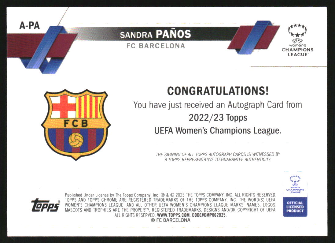 2022-23 Topps Chrome UEFA Women's Champions Auto Orange Wave Sandra Panos /25