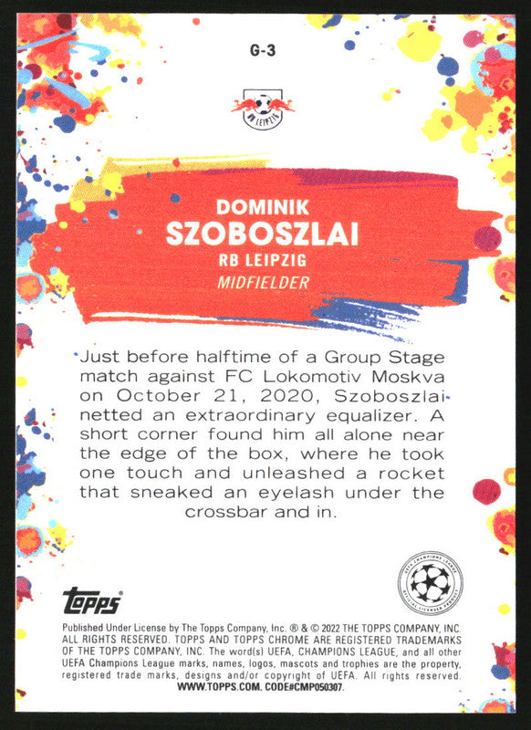 2021-22 Topps Chrome UEFA Champions League Golazo Gold Lava Dominik Szoboszlai