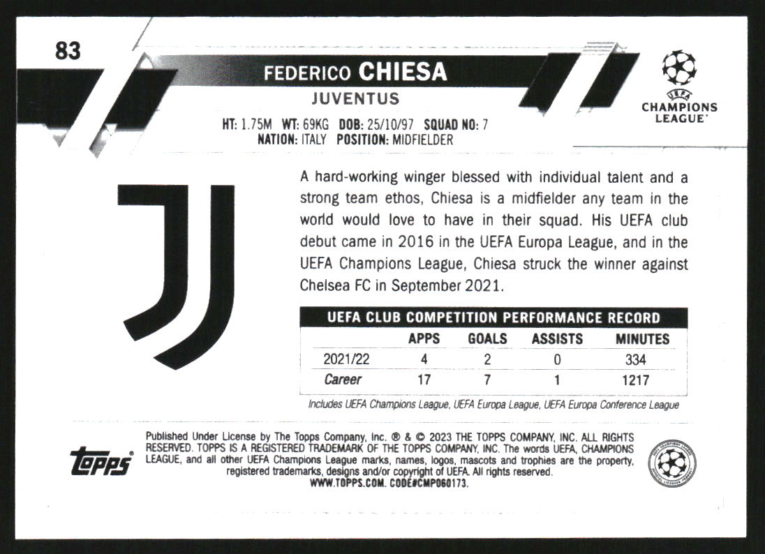 2022-23 Topps Chrome UEFA Red Gold Seismic Refractors #83 Federico Chiesa