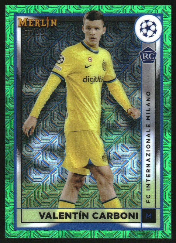2022-23 Topps Merlin UEFA Green Mojo Refractors #65 Valentin Carboni RC /99
