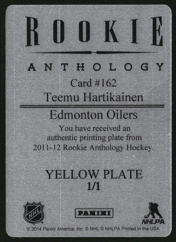 2011 Panini Rookie Anthology Printing Plate Yellow Teemu Hartikainen 1/1