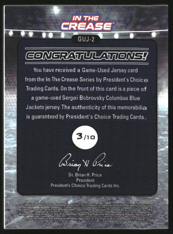 2022 In The Crease Game Used Jersey Sergei Bobrovsky /10