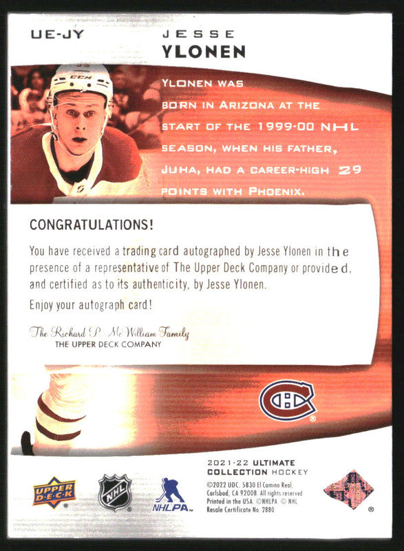 2021-22 Ultimate Collection Ultimate Emblems Rookie Auto Jesse Ylonen RC