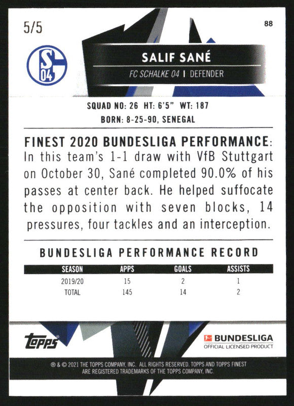 2020-21 Finest Bundesliga Red Refractors #88 Salif Sane /5
