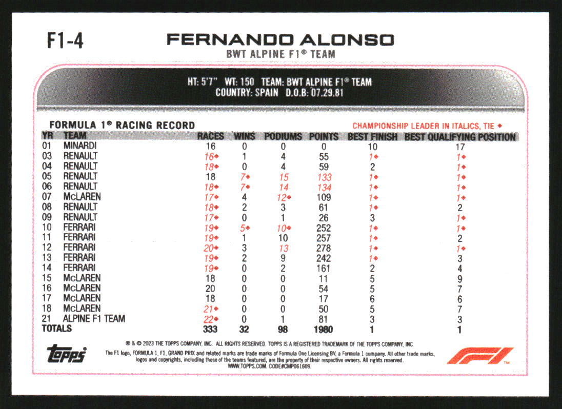 2023 Topps Industry Conference #F1-4 Fernando Alonso