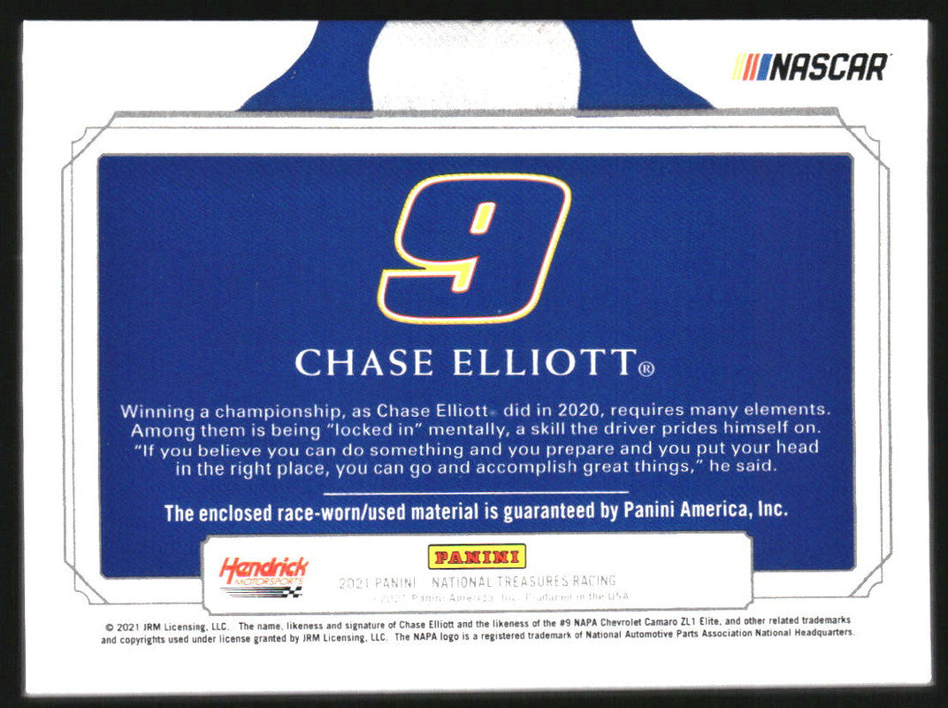 2021 Panini National Treasures Race Used Gloves Chase Elliott /25