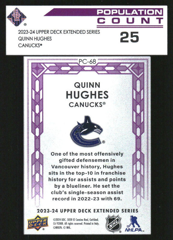 2023-24 Upper Deck Population Count 25 #PC68 Quinn Hughes