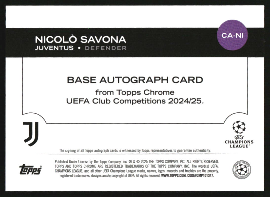 2024 Topps Chrome UEFA Autographs Orange Geometric #CA-NI Nicolo Savona Auto /25