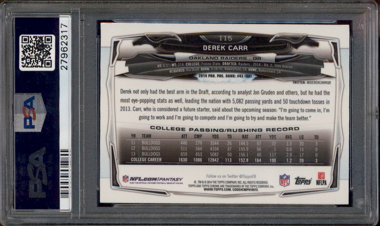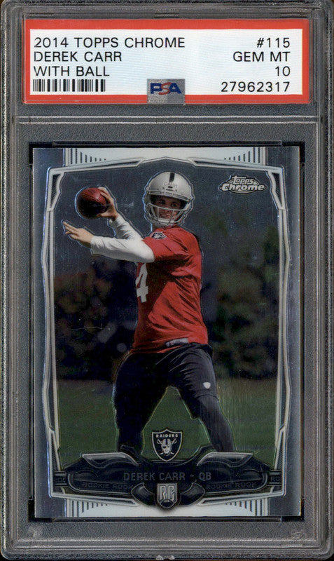 2014 Topps Chrome #115 Derek Carr With Ball RC Rookie PSA 10