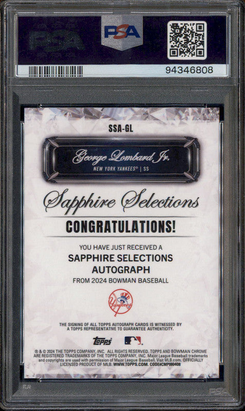 2024 Bowman Chrome Sapphire Selections Auto Red George Lombard Jr /5 PSA 10