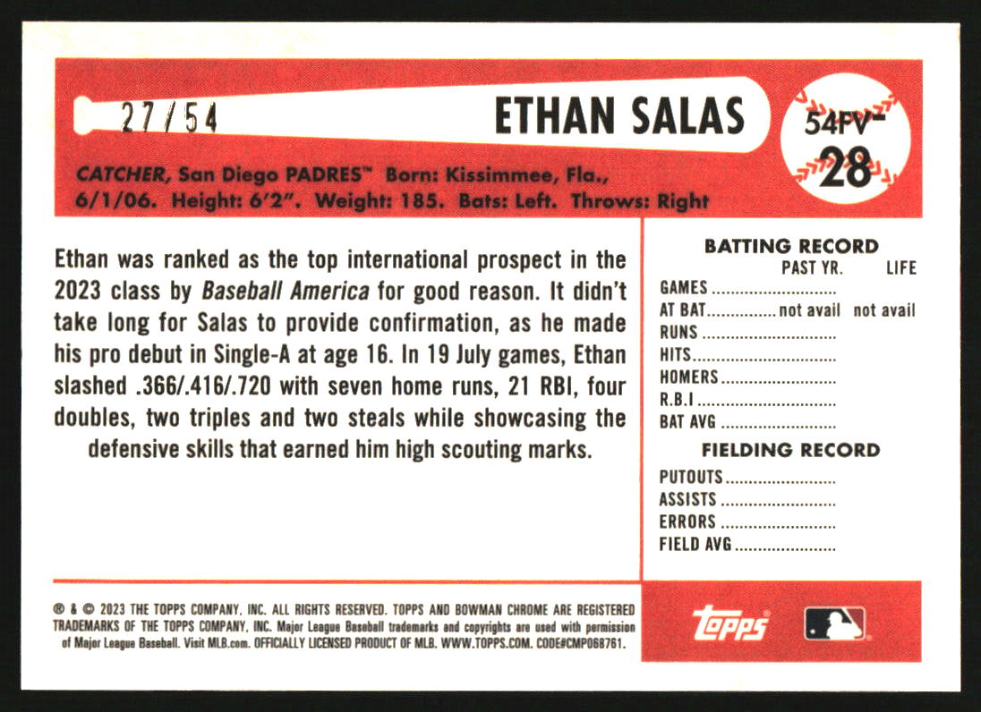 2023 Bowman Draft Bowman 1954 Flag Variation #54FV-28 Ethan Salas RC /54