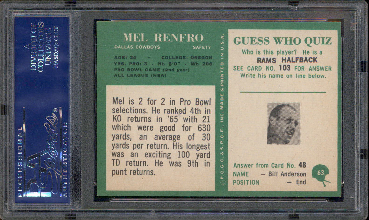 1966 Philadelphia #63 Mel Renfor PSA 8