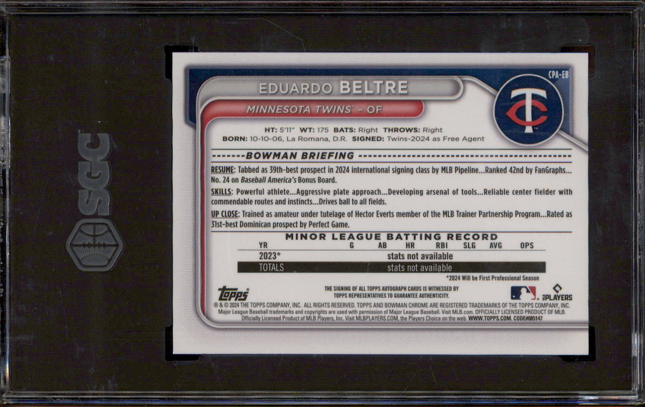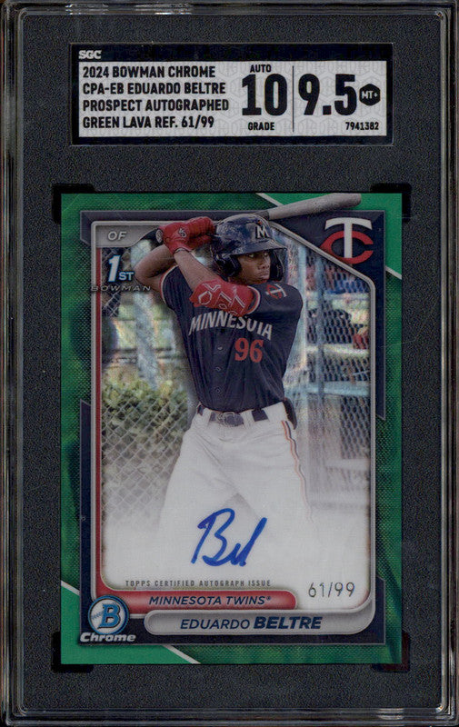 2024 Bowman Chrome Rookie Auto Green Lava Eduardo Beltre RC /99 SGC 9.5