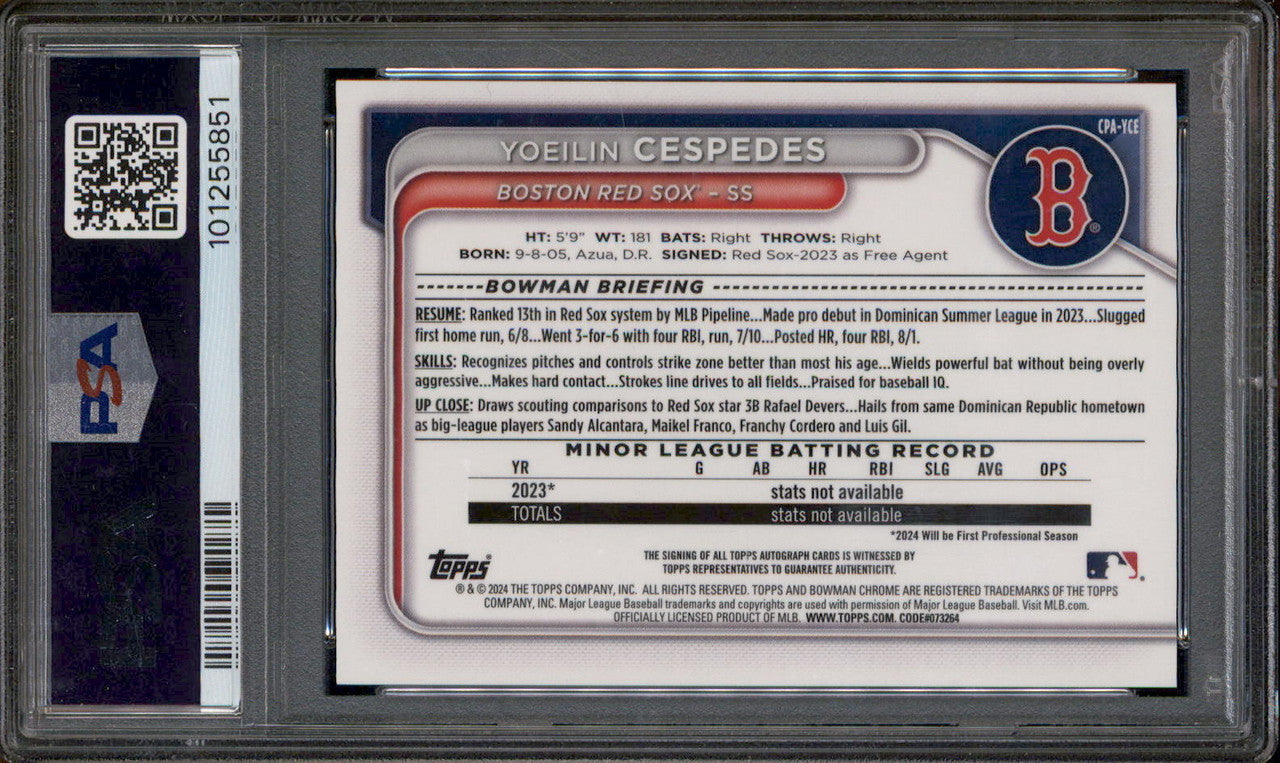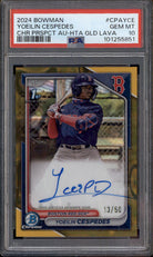 2024 Bowman Chrome Prospect Auto HTA Gold Lava Yoeilin Cespedes RC /50 PSA 10
