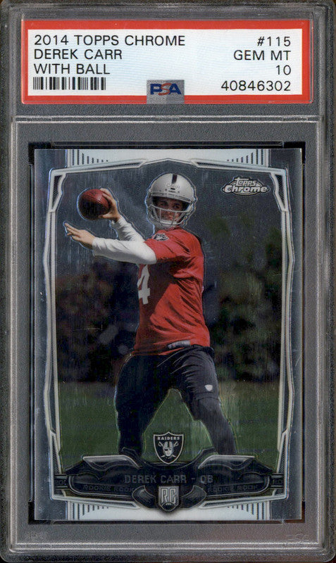 2014 Topps Chrome #115 Derek Carr With Ball RC Rookie PSA 10