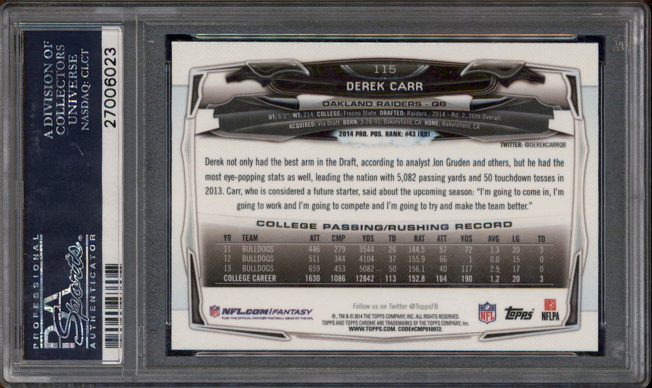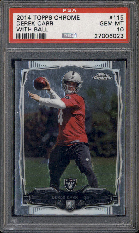 2014 Topps Chrome #115 Derek Carr With Ball RC Rookie PSA 10