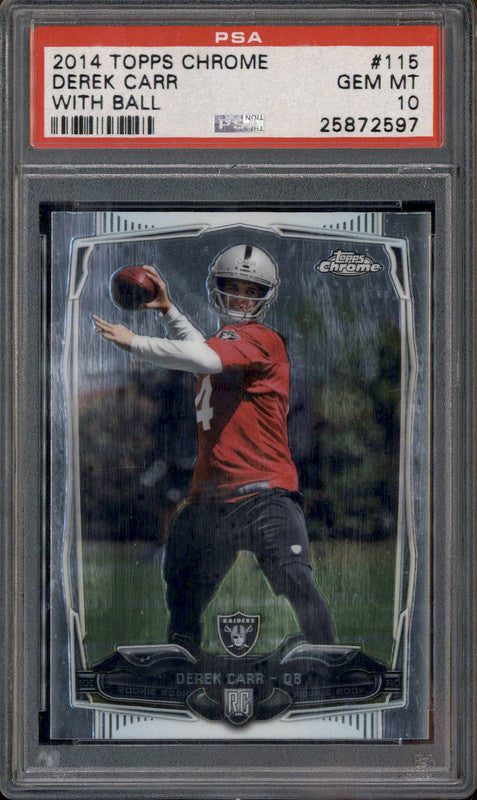 2014 Topps Chrome #115 Derek Carr With Ball RC Rookie PSA 10