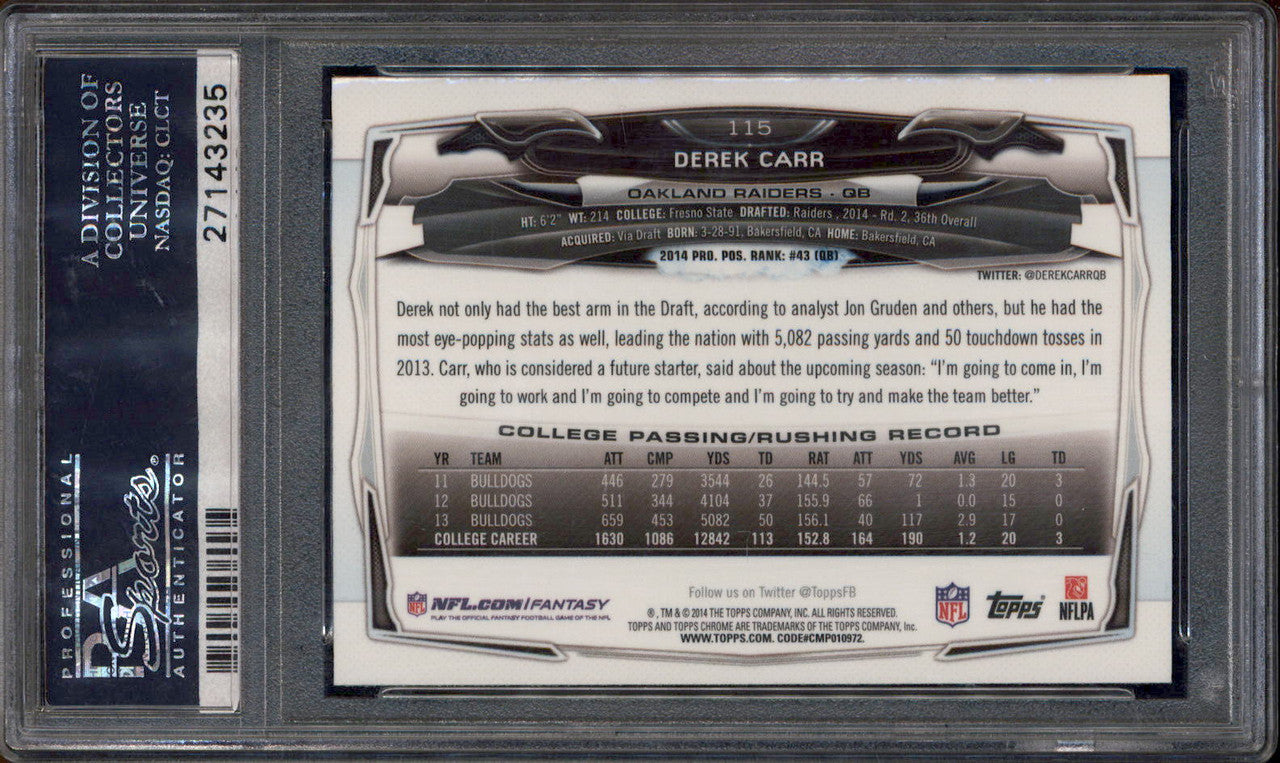 2014 Topps Chrome #115 Derek Carr With Ball RC Rookie PSA 10