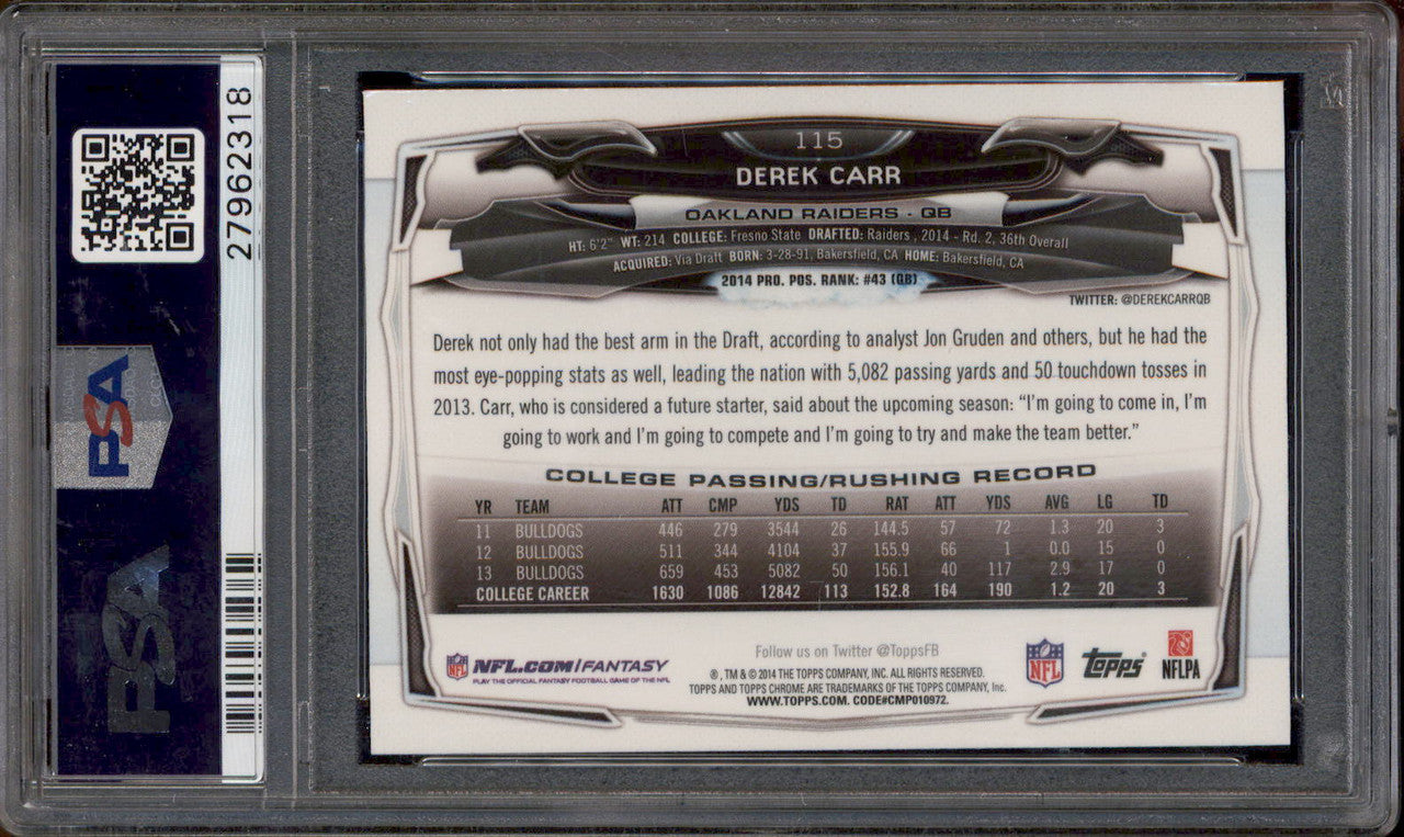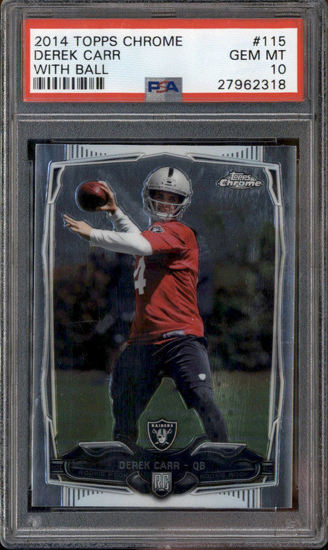 2014 Topps Chrome #115 Derek Carr With Ball RC Rookie PSA 10