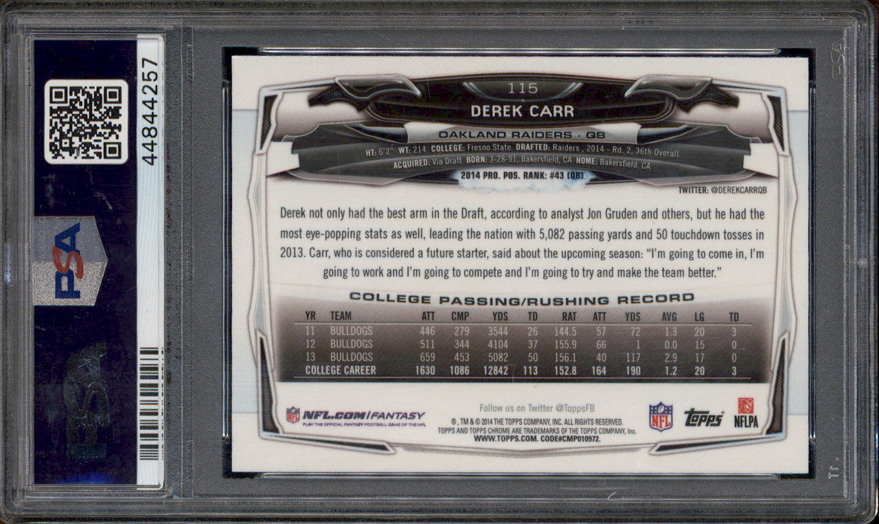 2014 Topps Chrome #115 Derek Carr With Ball RC Rookie PSA 10
